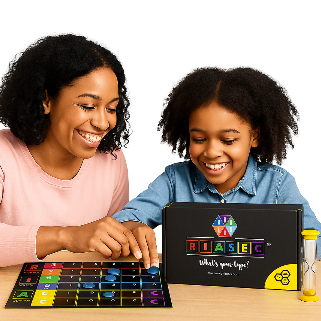 Help your child discover their natural personality type, strengths, and interests through our engaging RIASEC board game. Watch as they learn about themselves in a fun, pressure-free environment.